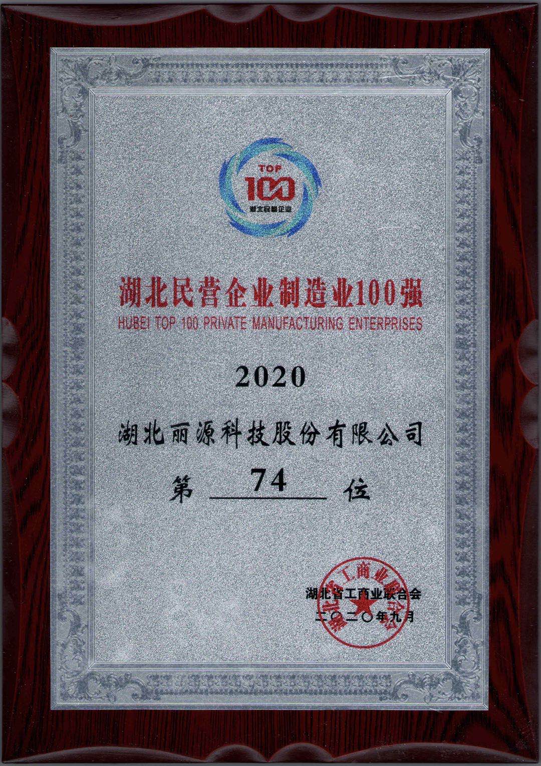 • Hubei Top 100 Private Enterprises in Manufacturing